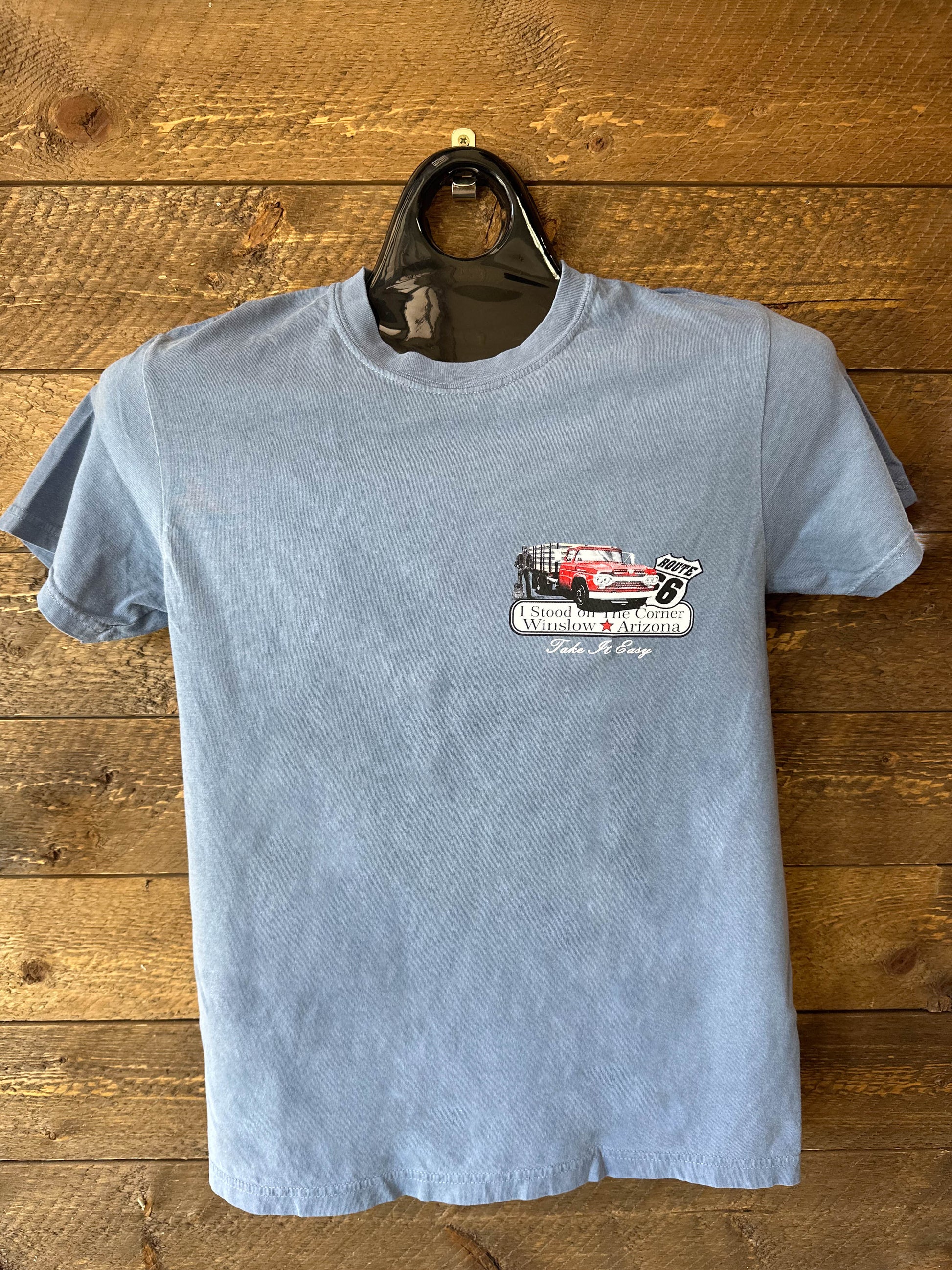 This tee is an abosolute classic! We love the flatbed Ford moment on this corner. This tee has a fun punch of color and is such a memorable way to represent your time visiting the corner.