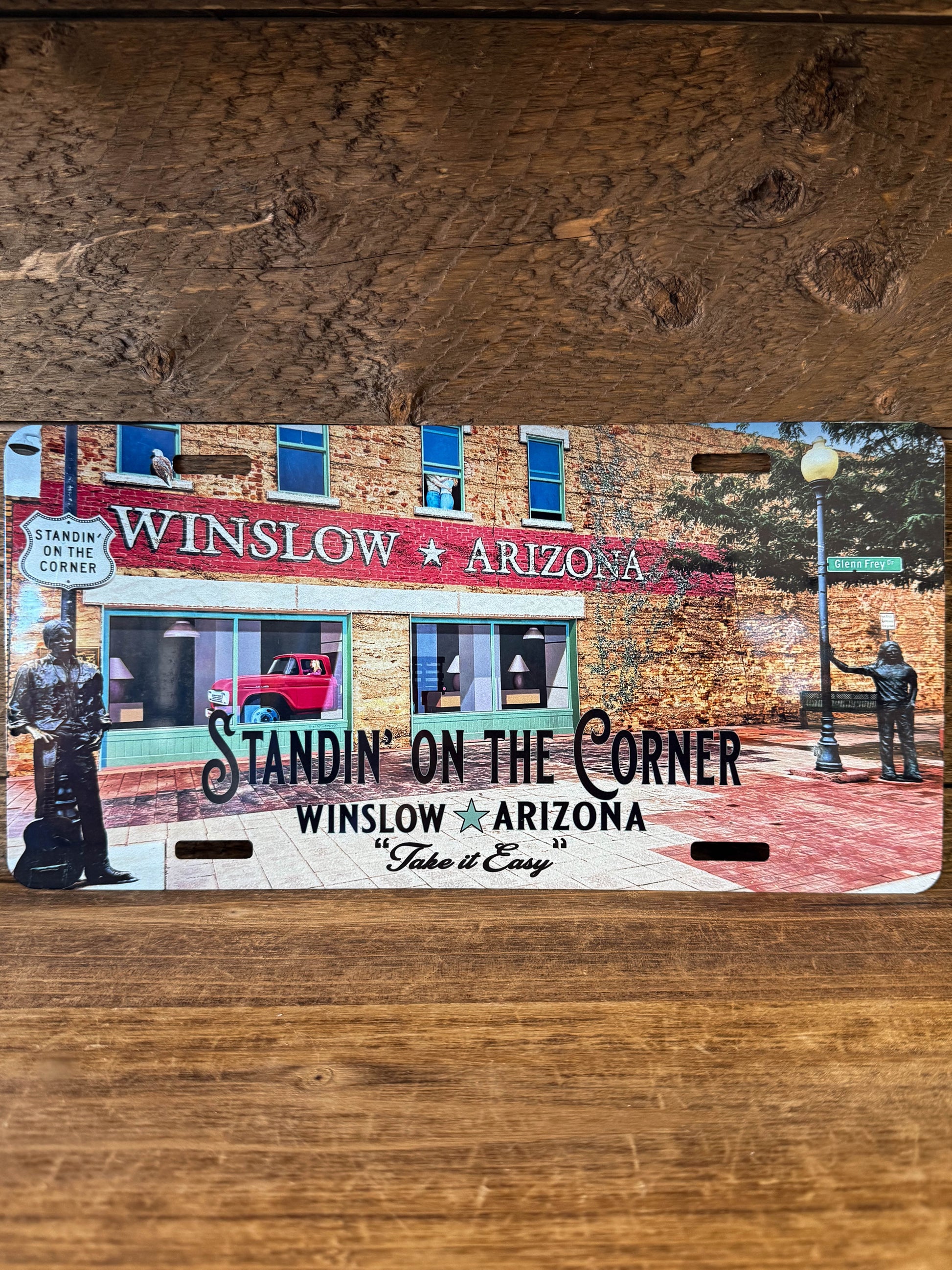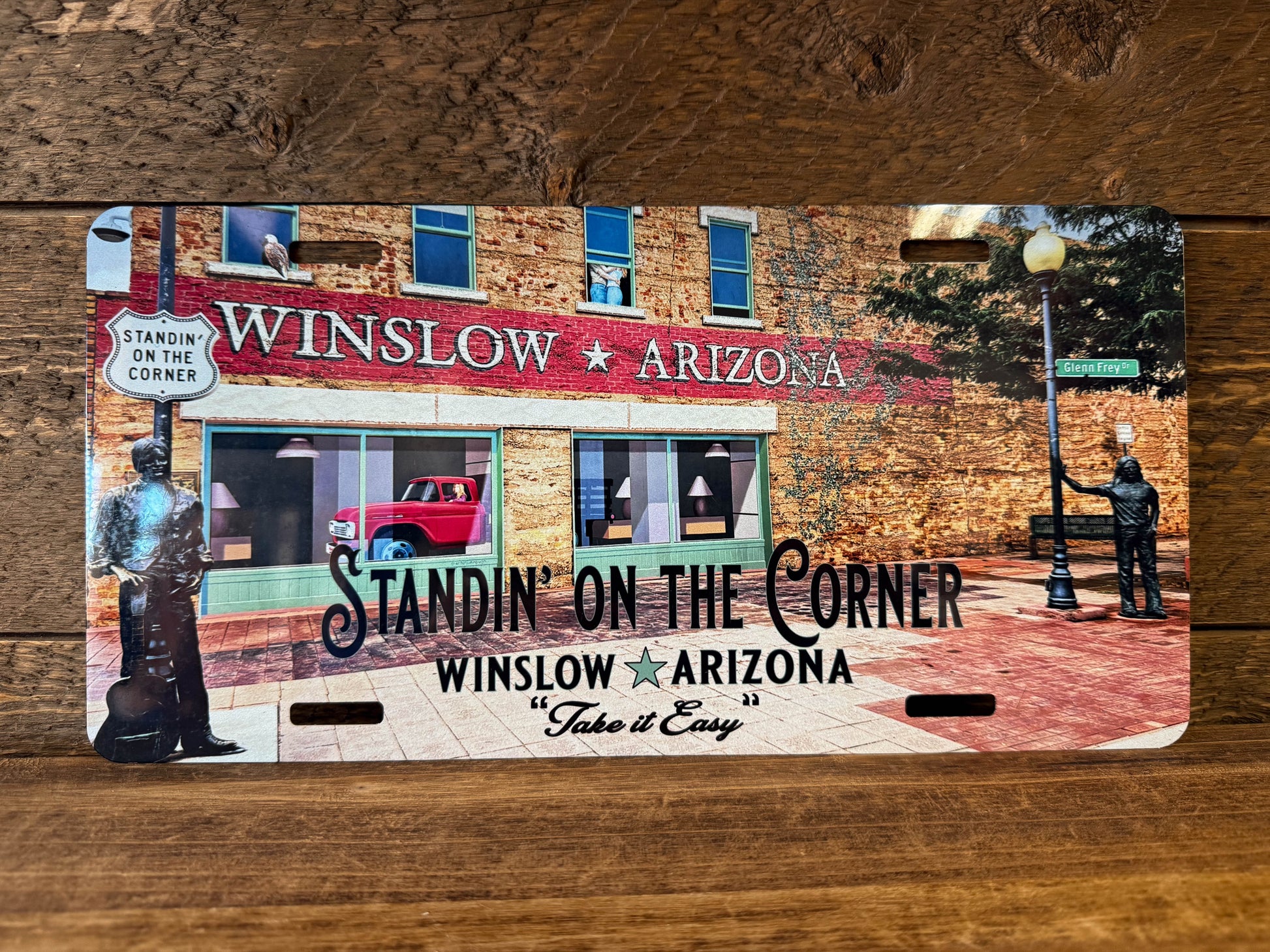 This license plate shows both of the famous statues from our favorite corner in Winslow, Arizona. This is a great way to commemorate your time visiting our favorite spot!