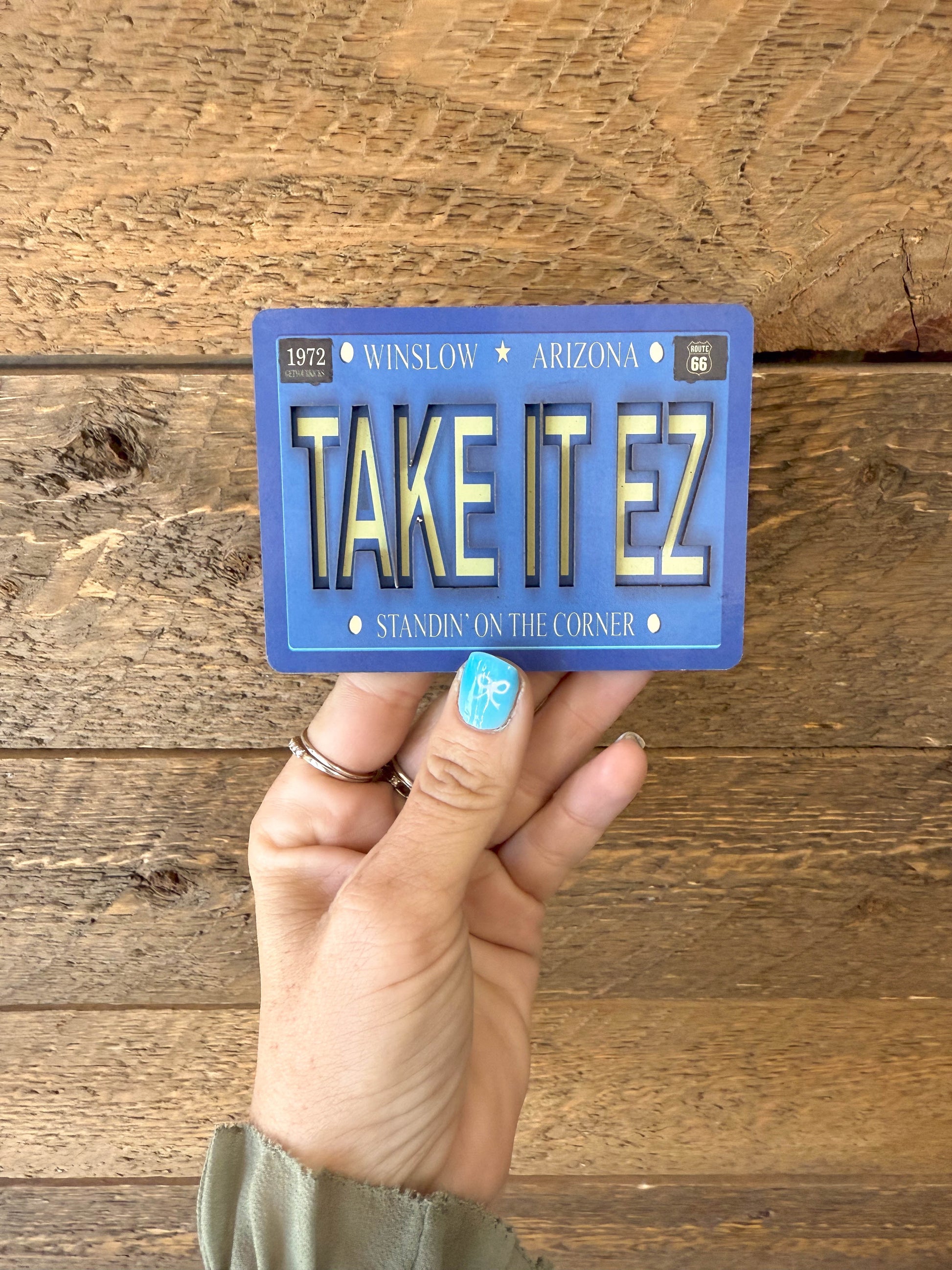 This is a magnet that looks similar to license plate and is such a fun way to commemorate your time on the corner Taking it Easy!
