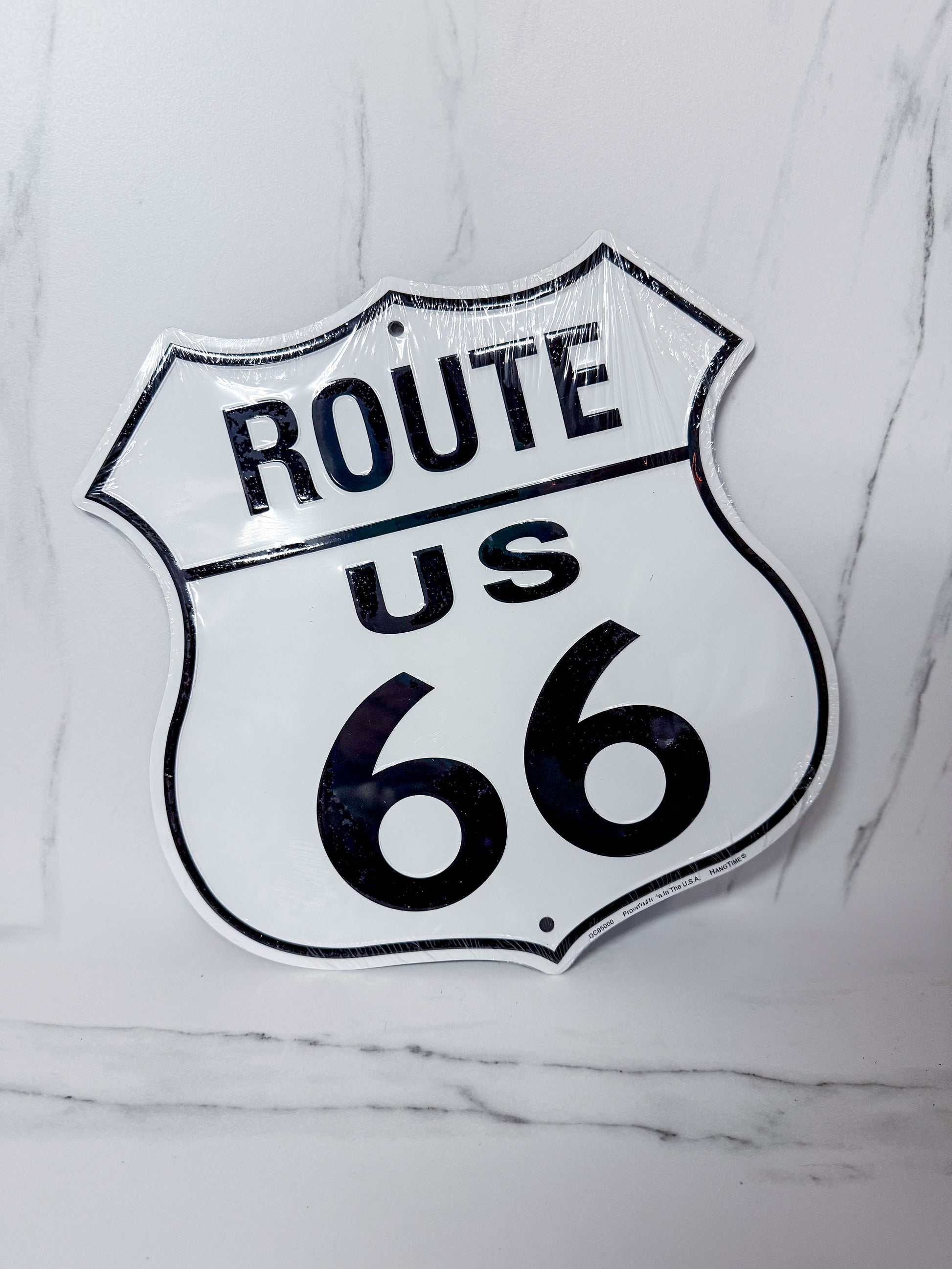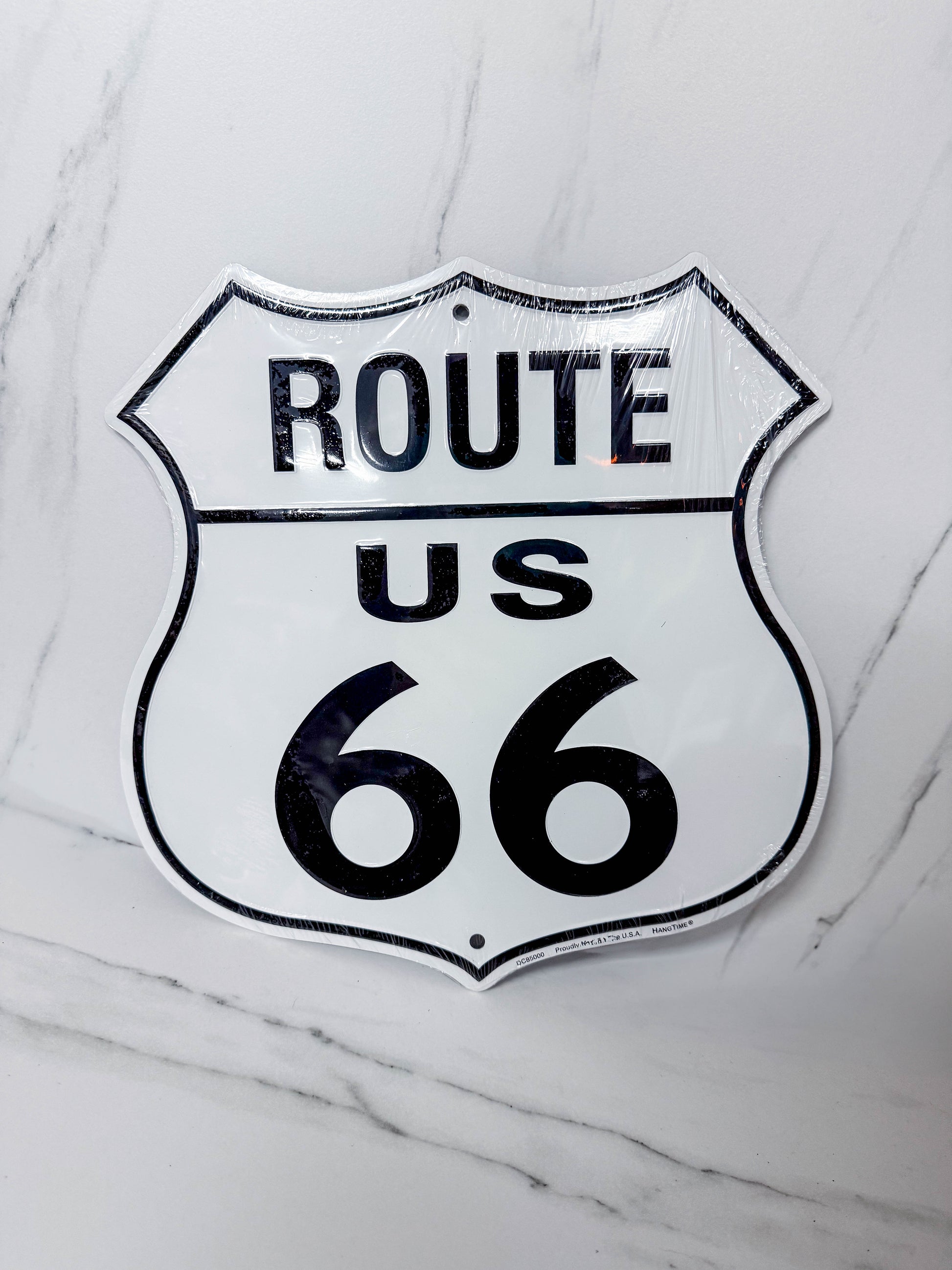 This sign is the traditional Route 66 shield, and is the best way to commemorate your travels across America's favorite highway. It measures approx. 11.25" x 11.25".