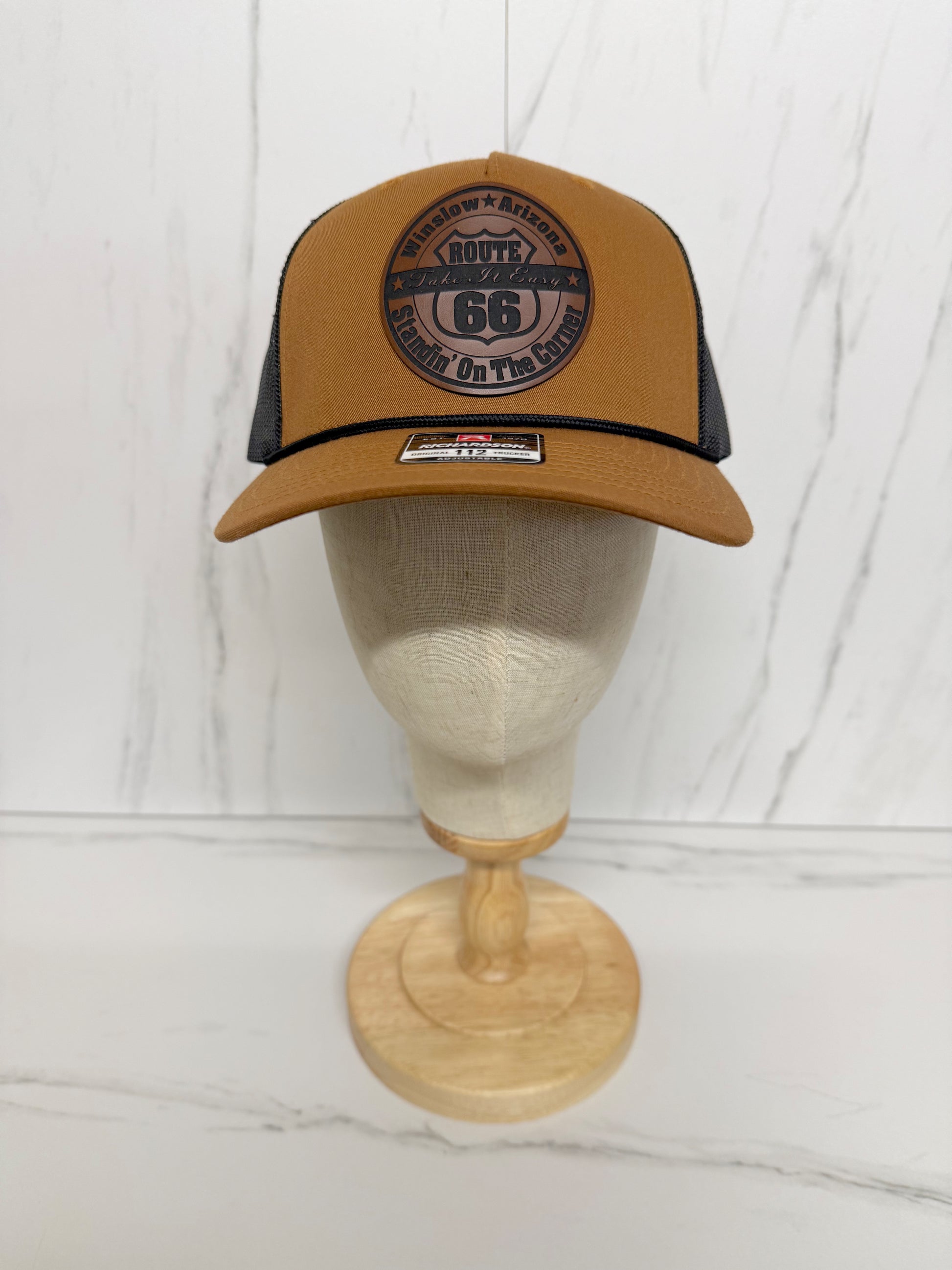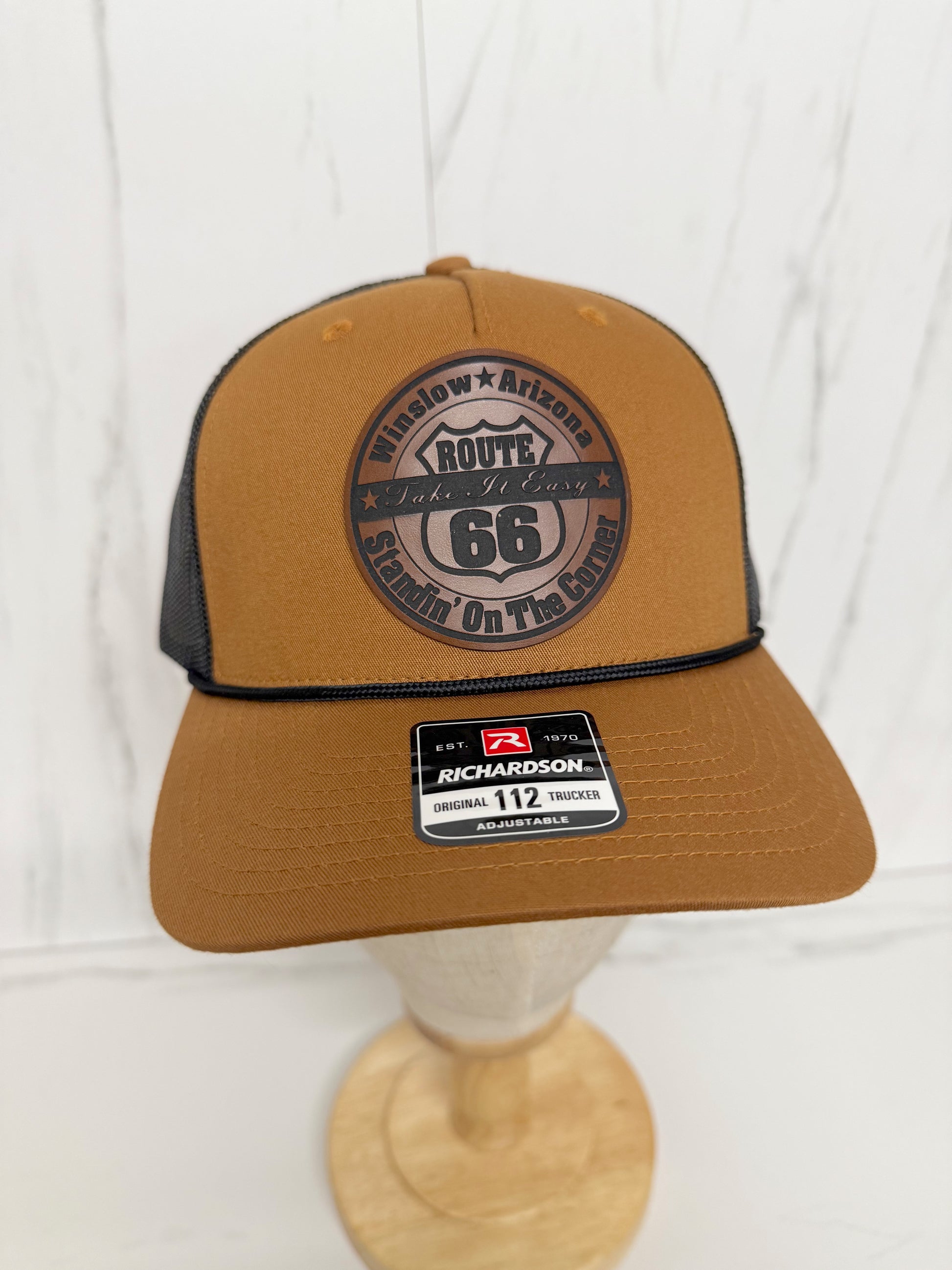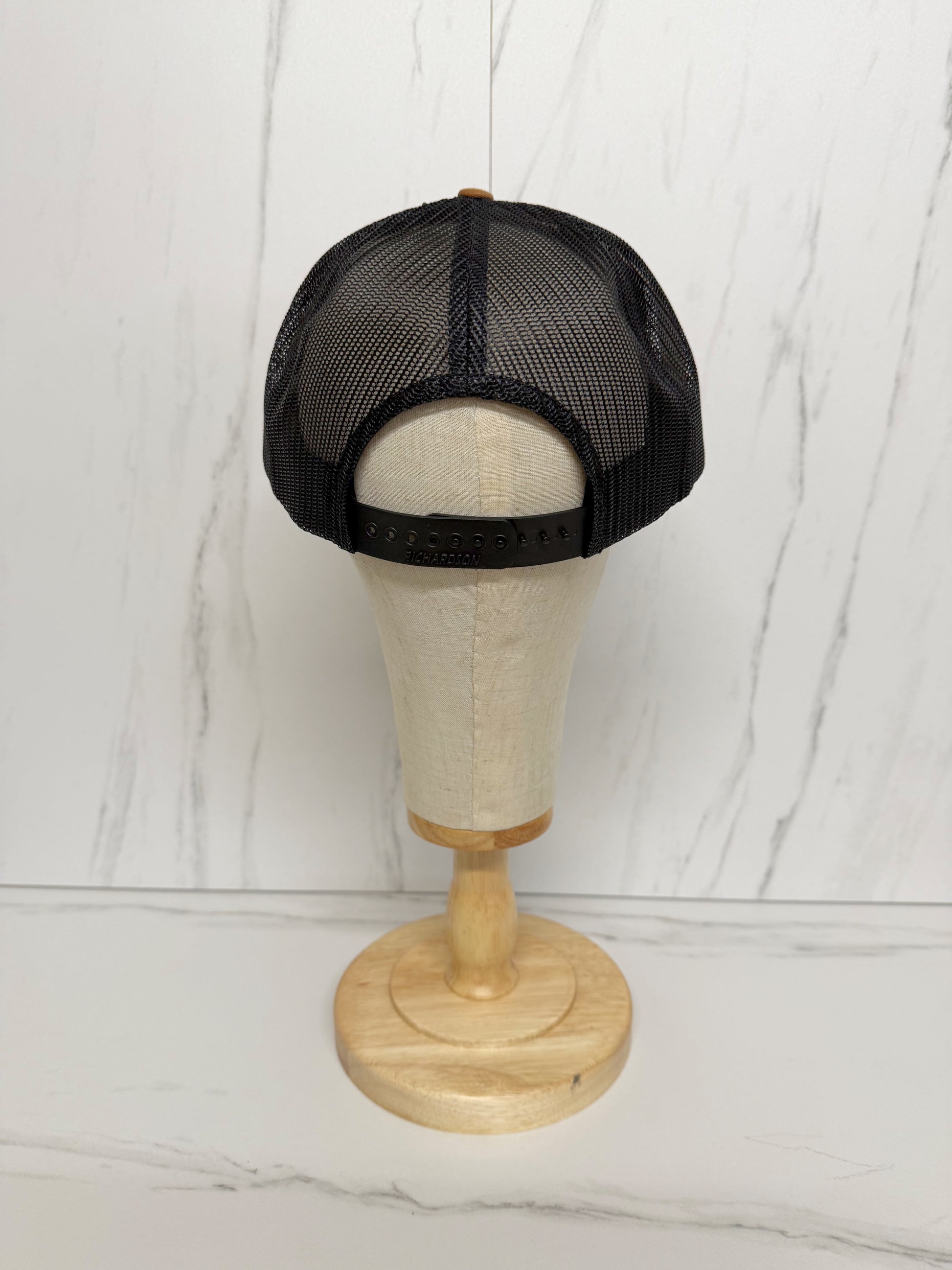 Richardson 112 trucker cap with black rope across the brim